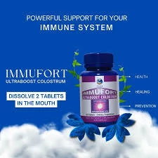 Immufort Ultrabost Colostrum adalah suplemen imun premium berbentuk tablet, diformulasikan dengan Colostrum murni berkualitas tinggi. Colostrum sendiri dikenal sebagai "susu emas pertama" yang diproduksi oleh mamalia setelah melahirkan, kaya akan antibodi, faktor pertumbuhan, dan nutrisi lengkap.